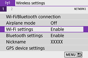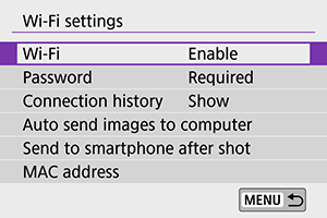 Nustatykite nuostatą [None/Nėra], kad būtų galima užmegzti „Wi-Fi“ ryšį nenaudojant slaptažodžio (išskyrus tuomet, kai „Wi-Fi“ ryšiu jungiama su prieigos tašku).