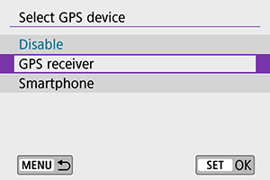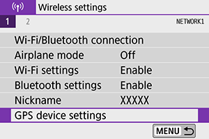- Daugiau informacijos apie parinktį [Set up/Sąranka] rasite GP-E2 naudotojo vadove.