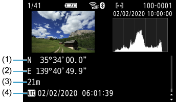 Į kadrus įtrauktą vietos informaciją galite patikrinti fotografavimo informacijos ekrane ().