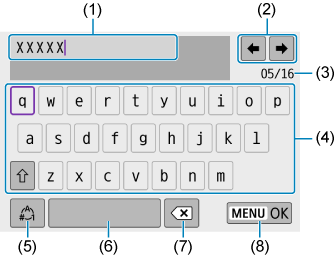 - (2)Žymiklio mygtukai, skirti judėti įvesties srityje