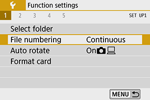 Net ir pakeitus kortelę arba sukūrus naują aplanką, failai numeruojami ta pačia seka iki 9999. Tai naudinga, kai norima iš kelių kortelių ar kelių aplankų įrašyti vaizdus, sunumeruotus nuo 0001 iki 9999, į vieną aplanką kompiuteryje.