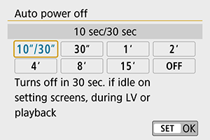 Galite pakeisti trukmę, kuriai praėjus, įsijungia fotoaparato automatinio išsijungimo funkcija.
