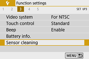 - Jei jutiklį paveikia kosminiai spinduliai ar panašūs faktoriai, užfiksuotuose vaizduose arba fotografavimo ekrane gali atsirasti šviesos taškų. Pasirinkus [Clean now