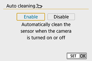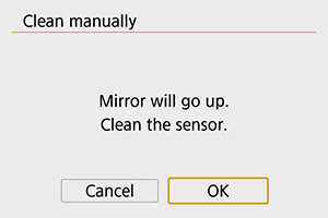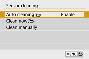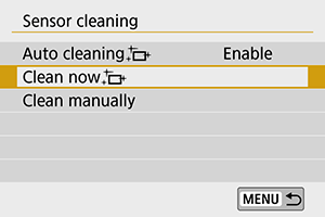 - Net jei pakartosite jutiklio valymo procedūrą, rezultatas ne ką pagerės. Atminkite, kad vos nuvalius, nuostatos [Clean now