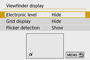 Jei nustatysite šią funkciją, fotoaparatui aptikus mirksinčio šviesos šaltinio sukeltą mirgėjimą, vaizdo ieškiklyje atsiras .