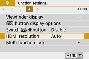 Nustatykite vaizdo išvesties raišką, kuri naudojama, kai fotoaparatas HDMI kabeliu prijungiamas prie televizoriaus ar išorinio įrašančio įrenginio.