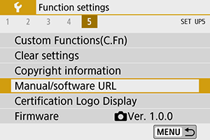 :Vadovų/programinės įrangos URL] ir išmaniuoju telefonu nuskenuokite rodomą QR kodą. Taip pat galite pasinaudoti kompiuteriu ir pasiekti svetainę, kurios URL adresas rodomas, ir atsisiųsti programinę įrangą.