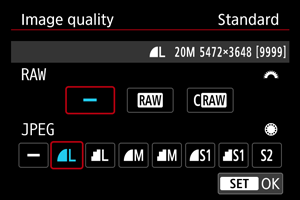 . RAW vaizdų atveju galite nurodyti vaizdo kokybę