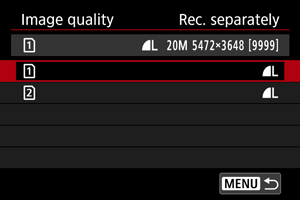 : Įrašymo funkcija + kortelės/aplanko pasirinkimas]) nuostata [Rec. separately/Įrašyti į atskiras korteles], sukdami ratuką