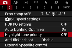 - [Enhanced/Sustiprintas]: tam tikromis fotografavimo sąlygomis sumažina pereksponuotų sričių dar labiau nei pasirinkus [Enable/Įjungti].