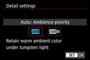 Pasirinkite pasirenkamą baltos spalvos balanso nuostatą.