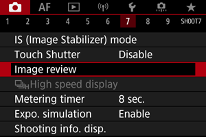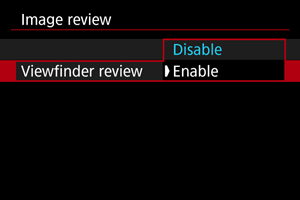 Nustatykite nuostatą [Enable/Įjungti], kad vaizdo ieškiklyje būtų rodomi ką tik nufotografuoti kadrai.