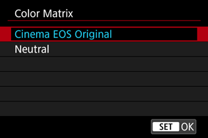 Pasirinkite [Canon Log].