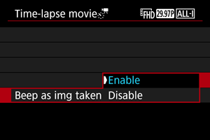 - Norėdami atšaukti fotofilmų įrašymą nustatykite parinkties [Time-lapse/Fotofilmas] nuostatą [Disable/Išjungti].