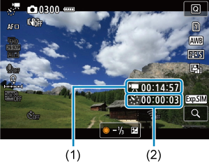 ]) rodoma raudonai, jei dėl nustatytos parinkties [No. of shots/Kadrų skaičius] nuostatos failo dydis pasidaro daugiau nei 4 GB ir kortelė nesuformatuota taikant „exFAT“ technologiją (). Jei ir toliau filmuosite esant tokioms sąlygoms ir filmuotos medžiagos failo dydis pasidarys 4 GB dydžio, fotofilmo įrašinėjimas nutrūks.