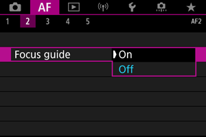 - MF maksimizavimą gali būti sunku įžiūrėti, kai nustatyta „Canon Log“. Jei būtina, nustatykite parinkties [View Assist./Peržiūros pagelbiklis] nuostatą [On/Įjungti].