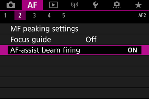 Pasirinkite [AF-assist beam firing/AF pagalbinio spindulio naudojimas].