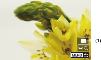 - Ekrane pasirodys padidintas vaizdas. Padidinto vaizdo zonos (1) vieta rodoma ekrano apatiniame dešiniajame kampe, kartu su [