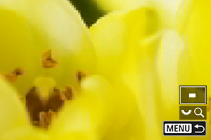 Įrašyto vaizdo pikseliai bus rodomi ekrane apytiksliai 100 %. Rodinio didinimas prasideda nuo fokusuojant naudoto AF taško. Jei vaizdas nufotografuotas sufokusavus rankiniu būdu, rodinio didinimas pradedamas nuo vaizdo centro.