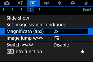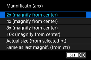Pradinį didinimo koeficientą ir padidinimo vietą galite nustatyti pasirinkdami [: Magnificatn (apx)/