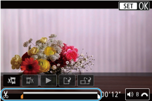 - Norėdami įrašyti suredaguotą filmą ir grįžti į filmo peržiūros ekraną, patvirtinimo lange pasirinkite parinktį [OK/Gerai].
