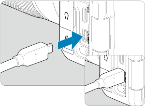 - HDMI kabelio kištukas įkiškite į fotoaparato lizdą