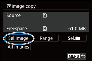 - Naudojantis nuostata [Sel.Image/Pasirinkti vaizdą], vienu metu negalima nukopijuoti keliuose aplankuose esančių vaizdų. Pasirinkite vaizdus vienu metu kopijuoti iš vieno aplanko.