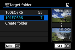 - Pasirinkite aplanką, į kurį kopijuoti vaizdus, ir paspauskite
