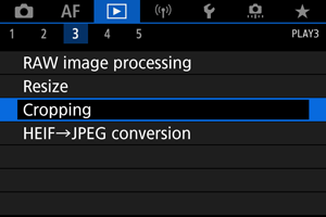 Galima apkirpti užfiksuotą JPEG vaizdą ir įrašyti jį kaip kitą vaizdą. Apkirpti galima JPEG arba HEIF vaizdus. RAW vaizdų ir iš 4K filmų užfiksuotų kadrų apkirpti negalima.