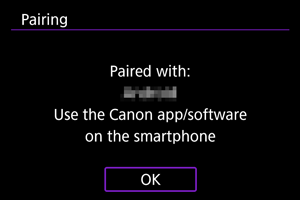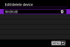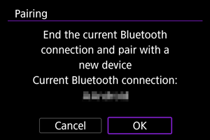 - Išmaniajame telefone turint įrašus apie anksčiau susietus fotoaparatus, jis nebus susietas su šiuo fotoaparatu. Prieš dar kartą bandydami susieti, pašalinkite anksčiau susietų fotoaparatų susiejimo įrašus iš išmaniojo telefono „Bluetooth“ nuostatų ekrano.