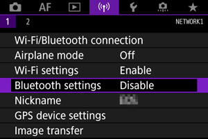 Jei pageidaujate nesujungti su fotoaparatu „Wi-Fi“ ryšiu, kai fotoaparatas yra išjungtas, nustatykite parinkties [Airplane mode/Lėktuvo režimas] nuostatą [On/Įjungti] () arba nustatykite parinkties [Bluetooth settings/„Bluetooth“ nuostatos] nuostatą [Disable/Išjungti].