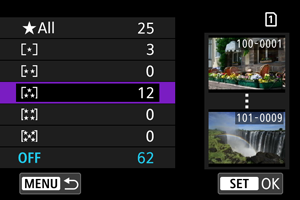 - Kai pasirinksite [OK/Gerai], peržiūrėtini vaizdai bus nustatyti.