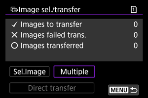 - Pasirinkus parinktį [Clear card's transf. history/Išvalyti kortelės perdavimo istoriją], išvaloma iš pasirinktos kortelės išsiųstų vaizdų perdavimo istorija. Išvalę perdavimo istoriją galėsite pasirinkti parinktį [Card images not transferred/Iš kortelės neperduoti vaizdai] ir vėl perduoti visus kortelėje esančius vaizdus.