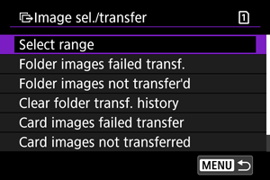 - Pasirinkus [Folder images failed transf./Vaizdai iš aplanko, kurių perduoti nepavyko], pasirenkami visi pasirinktame aplanke esantys vaizdai, kurių perduoti nepavyko.