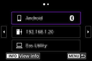 Jei išmaniojo telefono ryšio paskirties vieta buvo pakeista, atkurkite nuostatą, kad „Wi-Fi“ ryšiu sujungtumėte su fotoaparatu arba tuo pačiu prieigos tašku kaip ir fotoaparato.