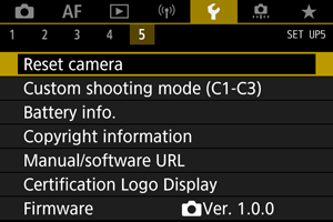 Atkuriamos numatytosios fotoaparato fotografavimo ir meniu funkcijų nuostatos.