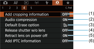 Pasirinkus [: Clear all Custom Func. (C.Fn)/