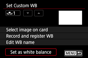 Pasirinkite parinktį [Set as white balance/Nustatyti kaip baltos spalvos balansą].
