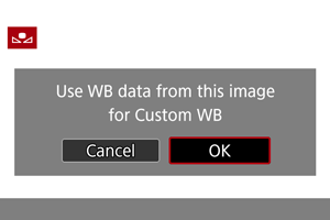 - Jei atliekant 4 veiksmą rodomas pranešimas [Correct WB may not be obtained with the selected image/Su pasirinktu vaizdu gali nepavykti gauti tinkamo baltos spalvos balanso], grįžkite į 1 veiksmą ir fotografuokite dar kartą.
