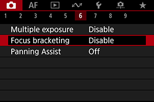 Nustatykite [Focus bracketing/Fokusuotės skirtingų parametrų serija].