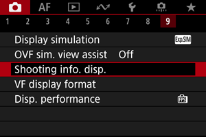 Pasirinkite [Lens info display/Objektyvo informacijos rodinys].