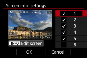 , pasirinkite informacinius ekranus, kurie turėtų būti rodomi fotoaparate.