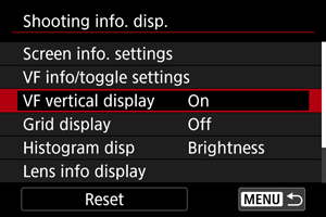 Pasirinkite [VF vertical display/VI vertikalus rodinys].