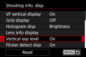 Pasirinkite [Vertical exp level/Vertikaliai pateikiamas ekspozicijos lygis].