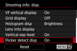 Pasirinkite [Flicker detect disp/Mirgėjimo aptikimo rodinys].