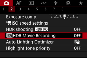 - Vaizdo spalvos ir skaistis gali trumpam smarkiai pakisti, jei pakeičiamos HDR filmavimo nuostatos. Be to, filmas trumpai nebus atnaujinamas ir trumpam sustos kadras. Turėkite tai omenyje, kai per HDMI įrašote filmus į išorinius įrenginius.