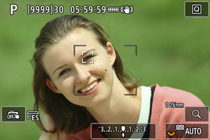 - Užregistruotas AF taškas mirksi pilka spalva.