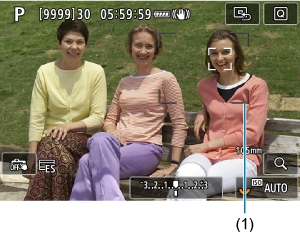 - Veidų aptikti negali, kai objektai smarkiai nesufokusuoti. Fokusuokite rankiniu būdu (), kad fotografuojamo objekto veidas atsidurtų aptikimui tinkamoje padėtyje, po to tęskite naudodami AF.