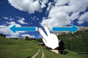 Fotoaparate yra jutiklinis ekranas, kurį galite paleisti norėdami valdyti peržiūrą. Palaikomi lietimo veiksmai panašūs į atliekamus naudojantis išmaniaisiais telefonais ir panašiais įrenginiais. Norėdami pasirengti peržiūrai naudojantis jutikliniu valdymu, pirmiausia paspauskite mygtuką .