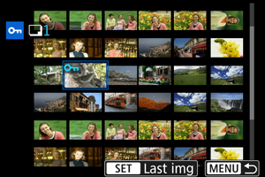 Žiūrėdami į vaizdus įjungę rodyklės rodinį, galite nurodyti pirmą ir paskutinį diapazono vaizdus, kad iškart apsaugotumėte visus nurodytus vaizdus.